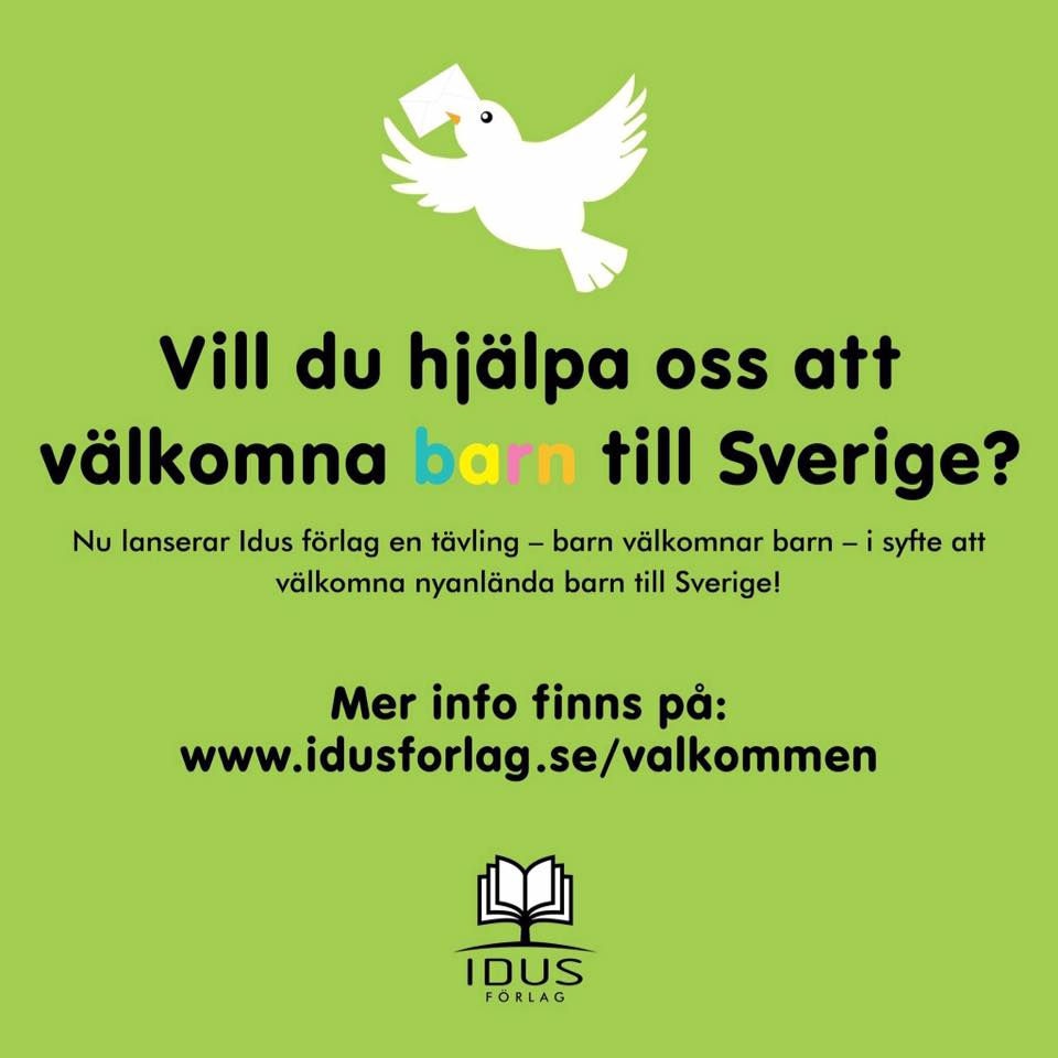 Vill du vara med i en riktig bok? Nu finns det möjlighet till det. Idus förlag anordnar nämligen en skrivtävling för alla barn mellan 6 och 15 år med temat ”barn välkomnar barn”. Just nu finns det extra många nyanlända barn i Sverige. Hur kan vi bemöta dem och få dem att känna sig välkomna?